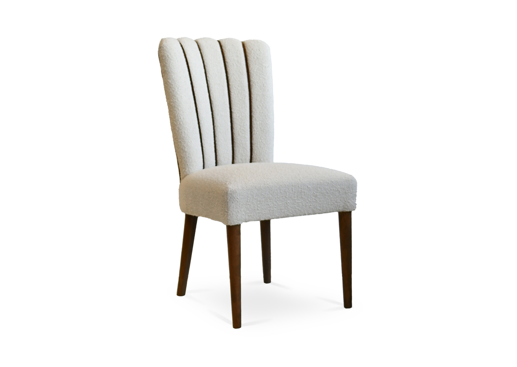 Solid maple wood chair. Includes parson waterfall seat with seams at front seat corners, using no-sag springs and high-density flame retardant foam. Fully upholstered inside and outside back. Vertical channel stitching at inside back with piping detail in each channel and at the outside back perimeter. Available in Pavar’s standard stain color options (water based)